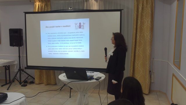 Preto je celkom prirodzené, že som dostala pozvanie prezentovať možnosti bartra na Medzinárodnej konferencii o mediácii v Modre. Pre mediátorov bol moj príspevok minimálne spestrením "vážnych" tém, ktoré sa tam striedali. Videli aj celkom iné, netradičné a pritom mimoriadne účinné riešenie pri niektorych typoch sporov - pomocou bartrových kompenzácií.